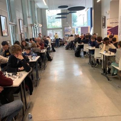 La partie à l'aveugle de Vincent Colin, M.I, contre Thierry Généreau et Emmanuel Renard, avec Elizabeth et Gabriel au déplacement des pièces, a consacré la victoire du Maître par mat.